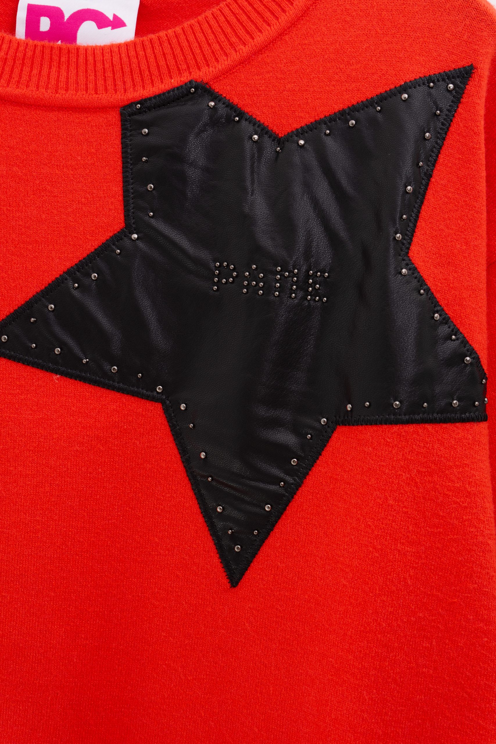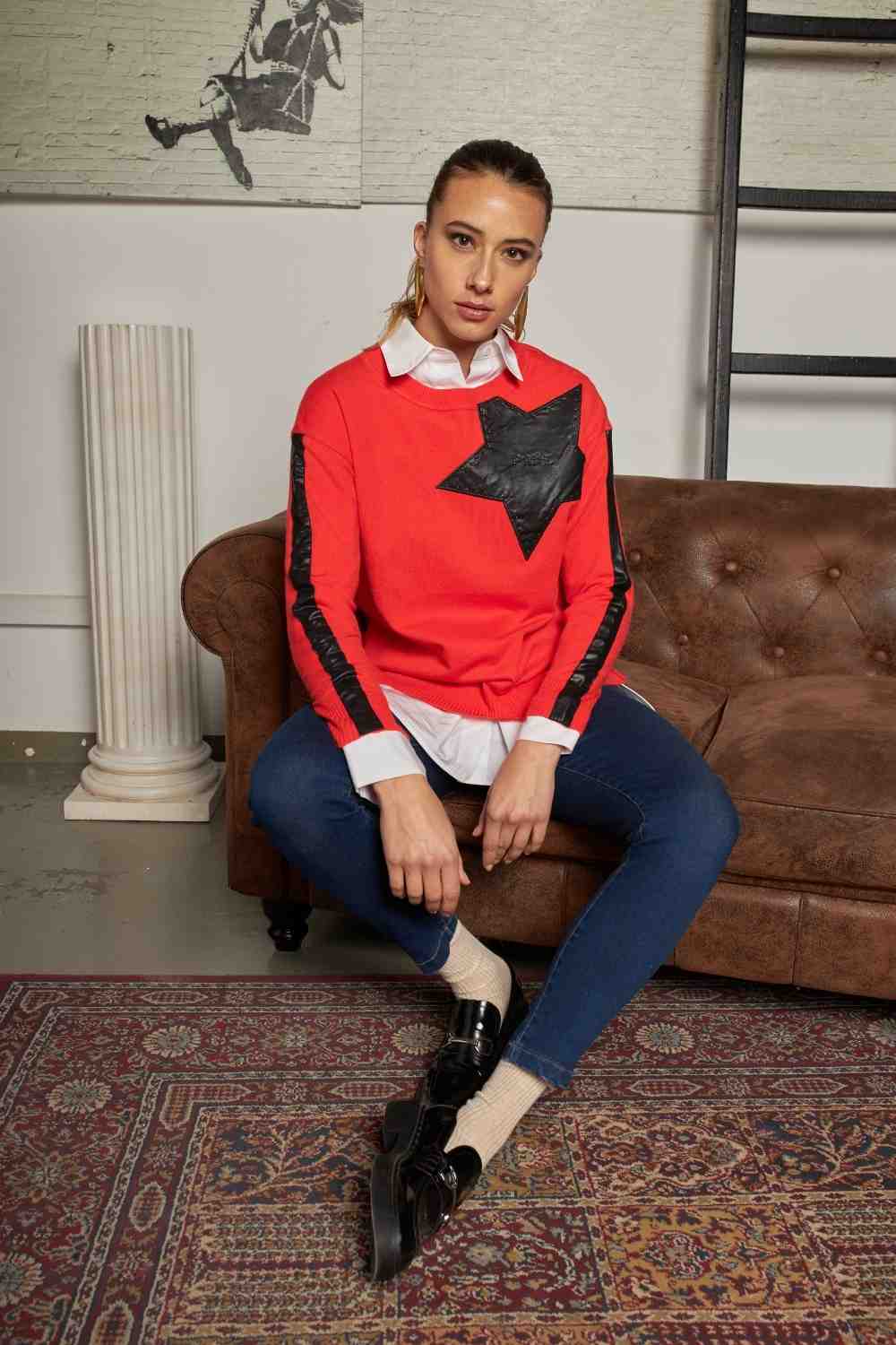 SUETER CUELLO REDONDO ESTRELLA POLIPIEL,MANGAS Y ESPALDA LETRA DE POLIPIEL