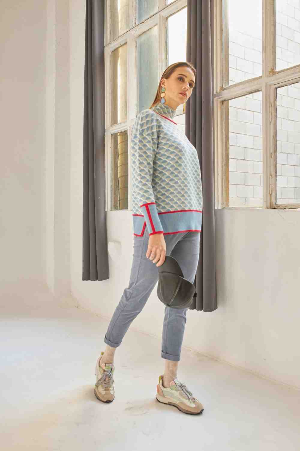 JERSEY CUELLO SEMICISNE CON ESTAMPADO GEOMÉTRICO