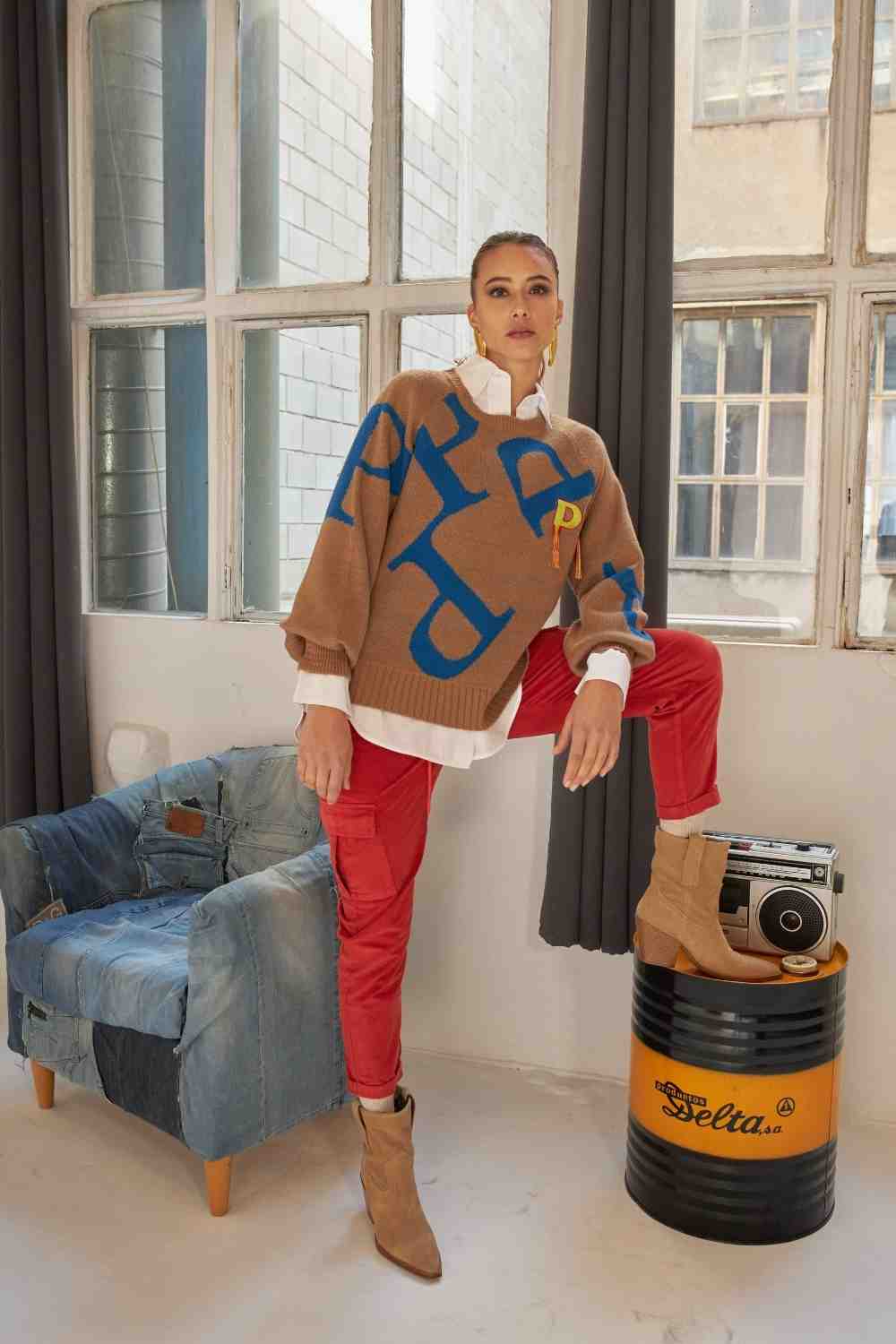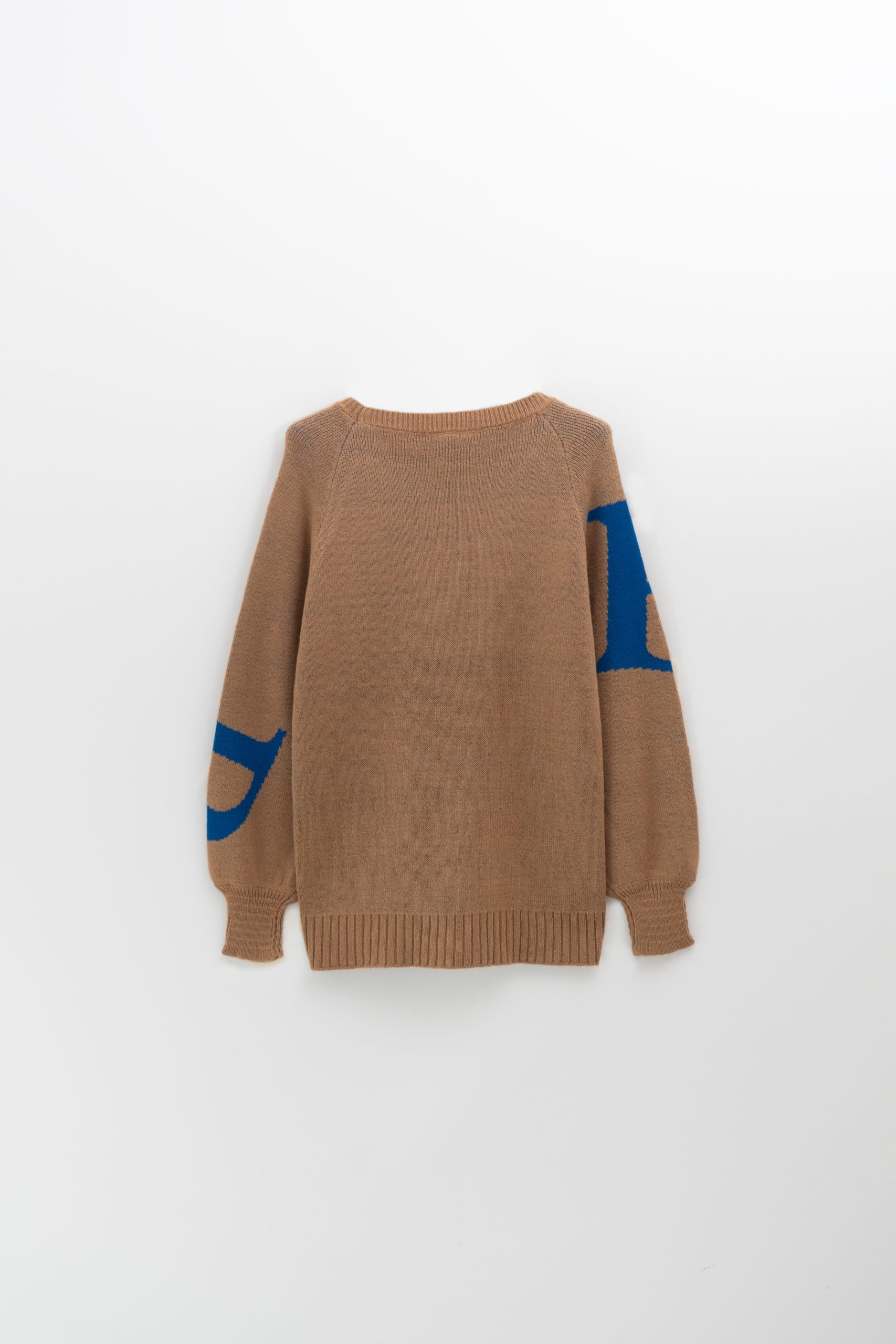 JERSEY EN CON LETRAS Y MANGA GLOBO , PUÑOS APRETADOS