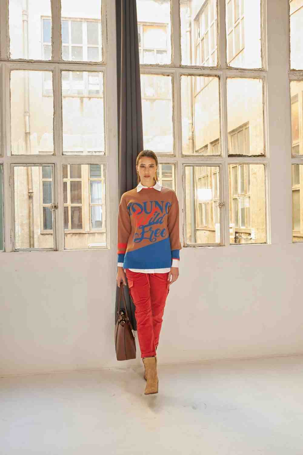 JERSEY CUELLO REDONDO EN JAQUARD CONTRASTADO CON PALABRAS